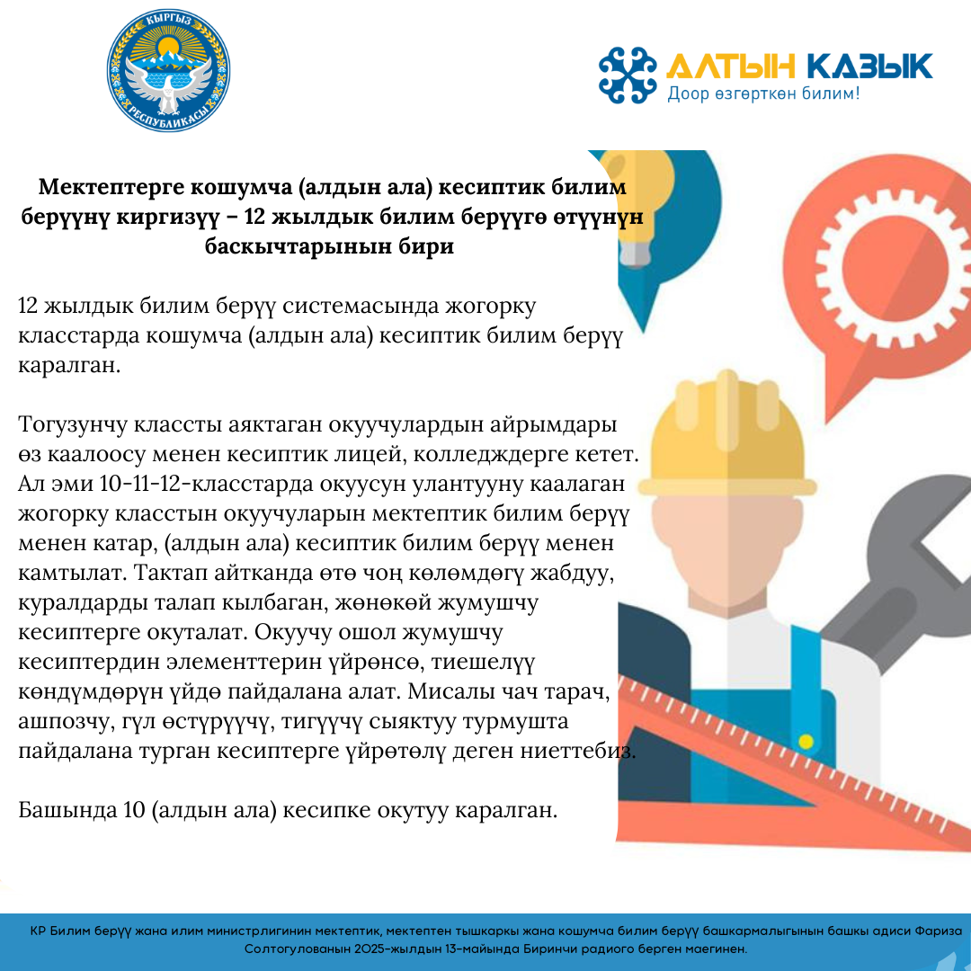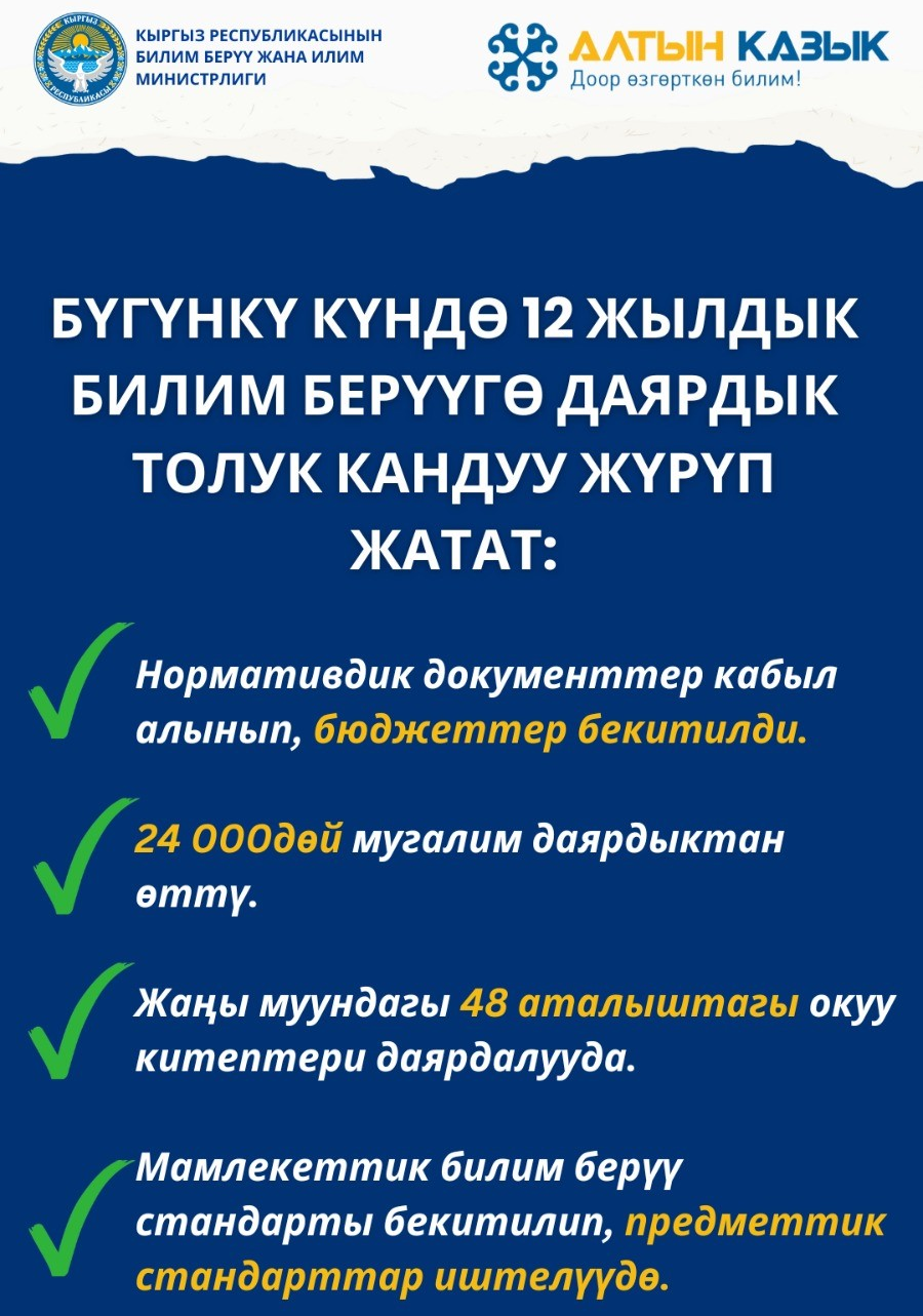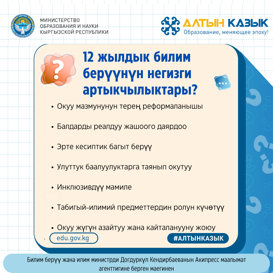 ЖМК 12 жылдык мектептик билим берүүгө өтүү тууралуу