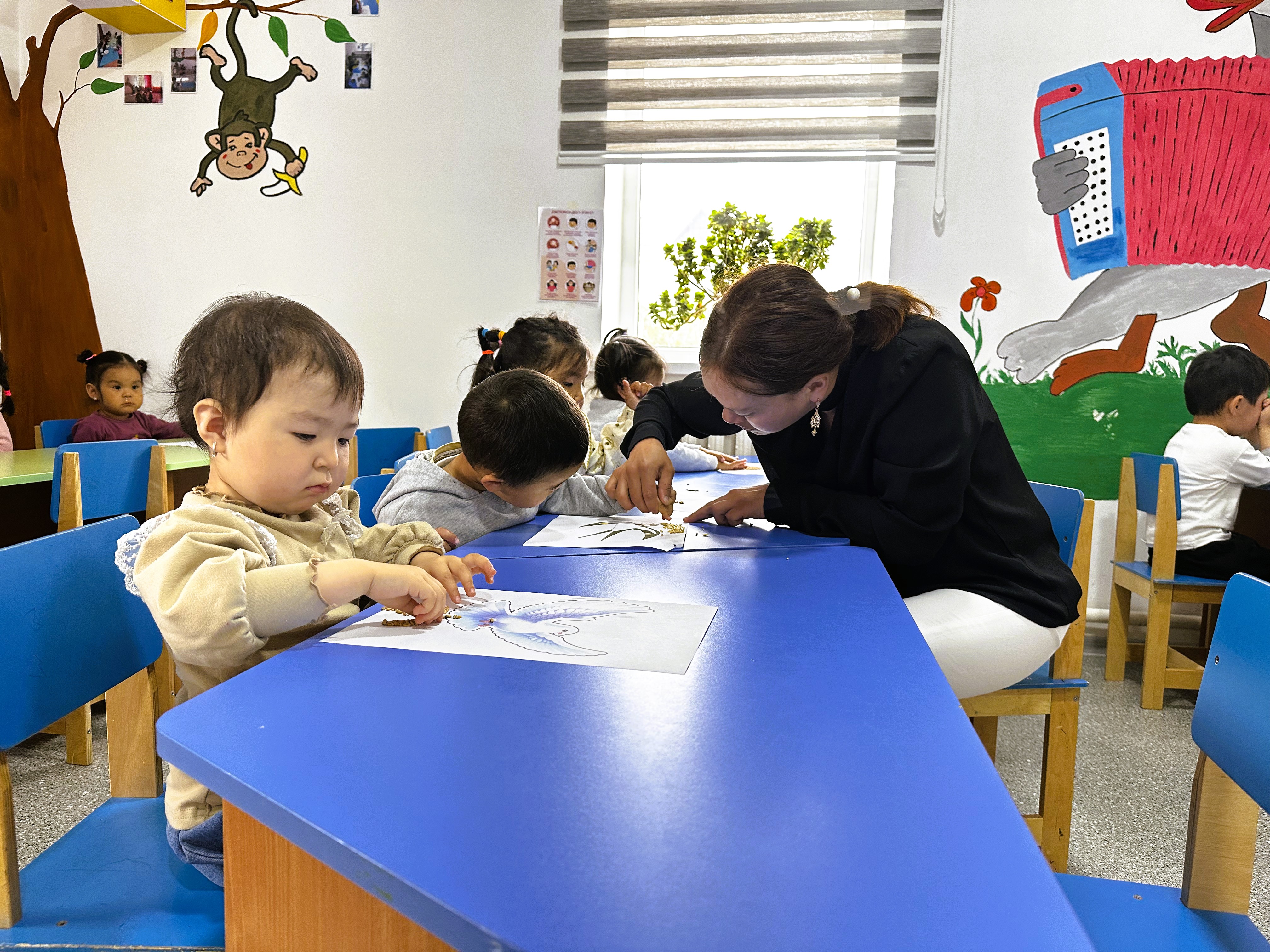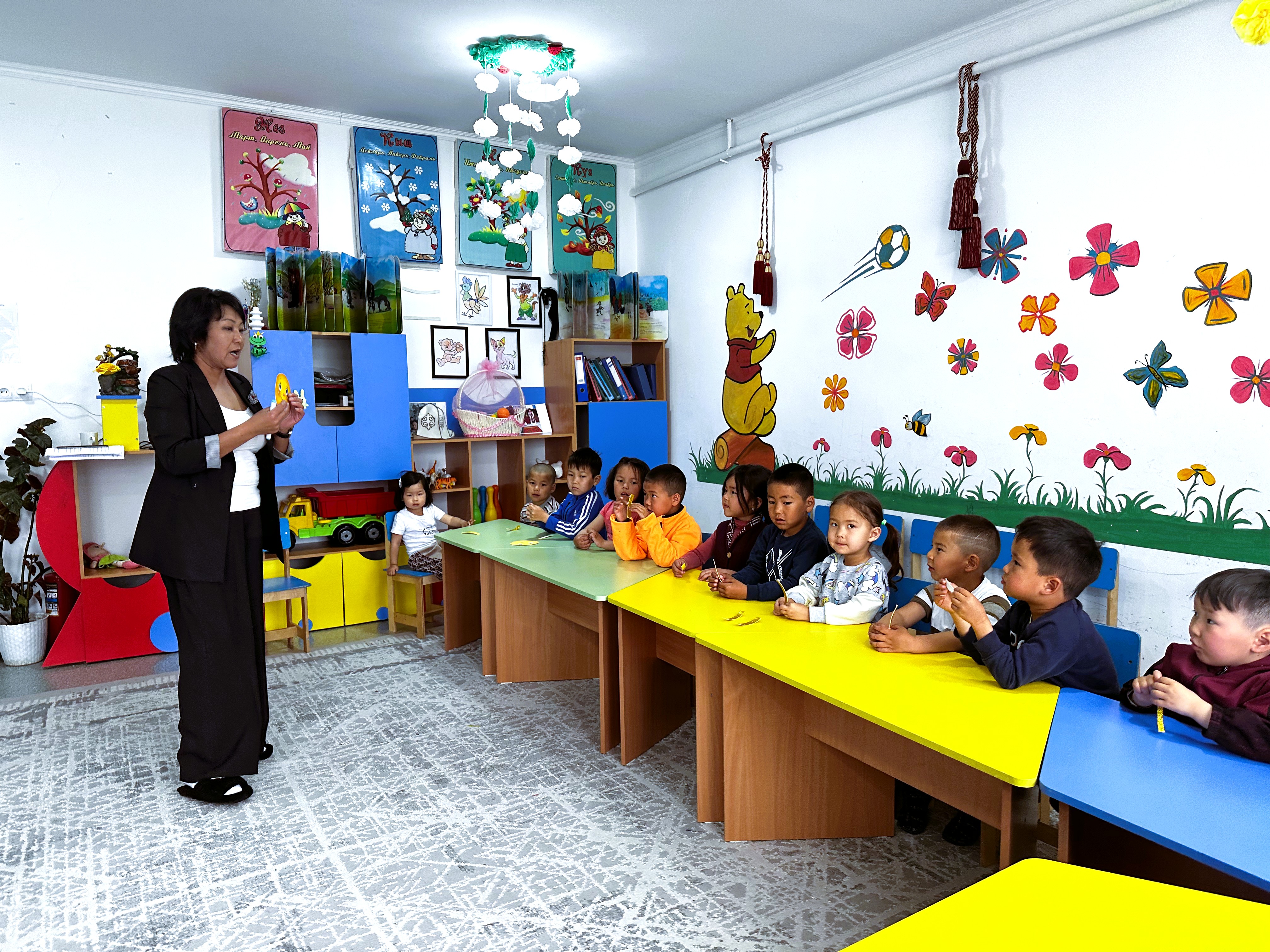 Бакча алгач 48 балага эшигин ачты. Алардын көпчүлүгү үчүн бул социалдашууга ташталган биринчи кадам эле. Бейтааныш чөйрө, жаңы эрежелер жеткинчектерди бир аз сүрдөтүп жатты. Бирок адаптация жеңил өттү – балдар оюнчуктарды айланчыктап, тарбиячылардын айтканын кызыгуу менен угуп, пластилинден түрдүү нерселерди жасап, сүрөт тарта башташты. Үч саат ушинтип мазмундуу да, пайдалуу да өтүп жатты.