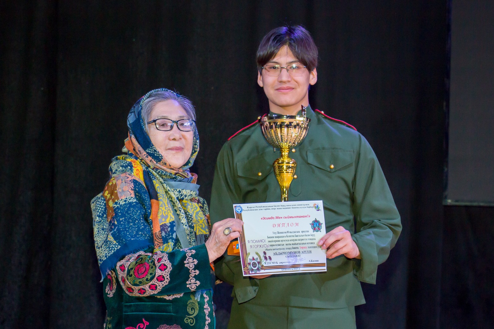В целях реализации Плана мероприятий Министерства, посвященных 80-летию Победы в Великой Отечественной войне Республиканским методическим центром физического воспитания, спорта и культуры Кыргызской Республики и на основании приказа министерства от 6 февраля 2025 года №154 провели творческий конкурс среди учащихся профессиональных лицеев города Бишкек «Эсимде.Мен сыймыктанам!». Со-организатором мероприятия выступает Национальный центр детей и юношества «Сейтек». С 25 по 27 марта 2025 года состоялся первый этап конкурса, в котором приняли активное участие 12 профессиональных лицеев города и представили жюри подготовленные номера песен на военно-патриотическую тему кыргызских и российских композиторов, исполнили монологи из произведений классиков кыргызской литературы Ч.Айтматова, С.Джусуева, А.Токомбаева. В отдельной номинации участниками были подготовлены сочинения на тему о ветеранах Великой Отечественной войны и видеоролики.