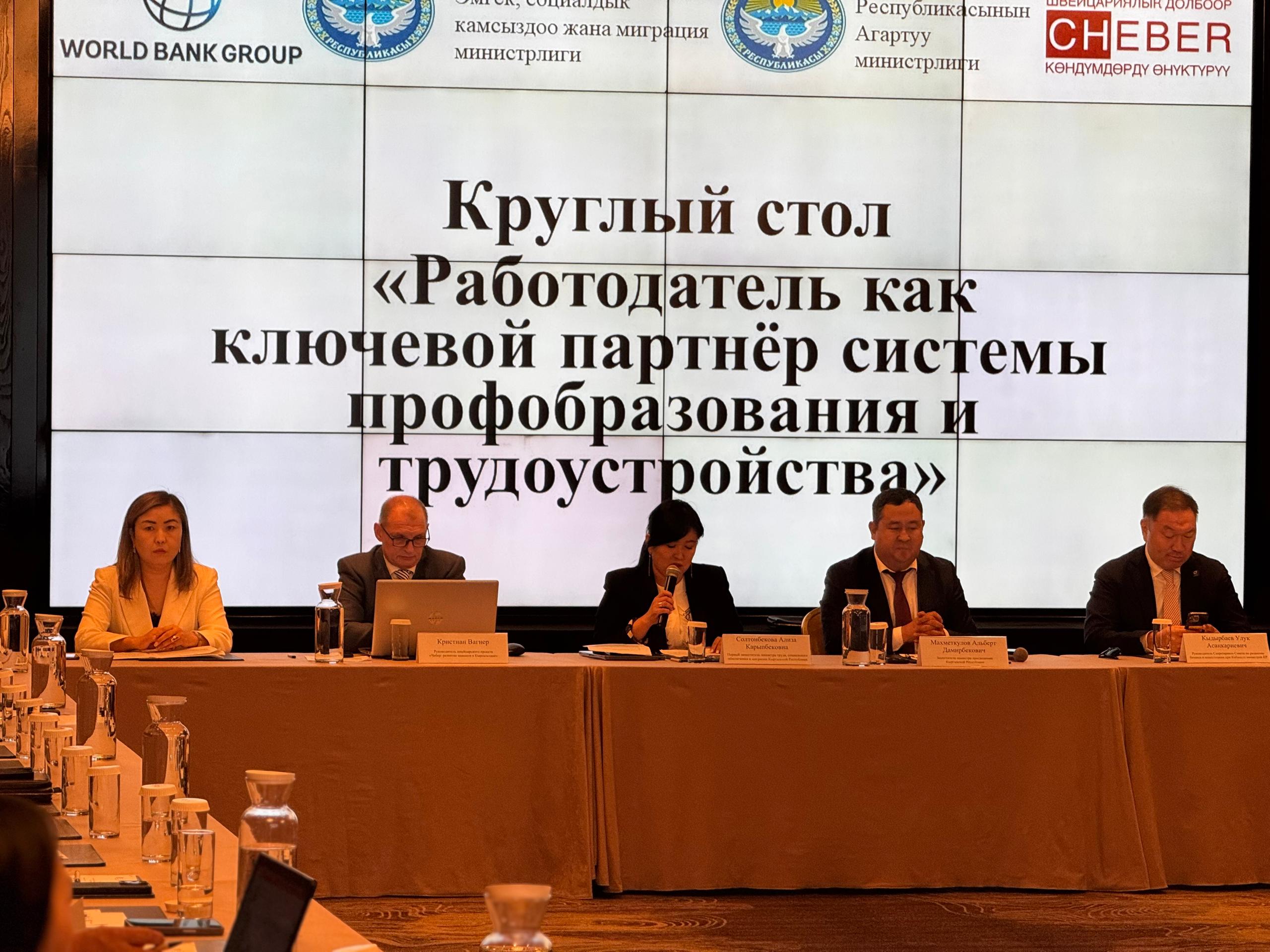 2025-жылдын 29-сентябрында Бишкек шаарында «Иш берүүчү - кесиптик билим берүү жана жумушка орноштуруу системасынын негизги өнөктөшү» деген аталышта тегерек стол өттү. Аны Кыргыз Республикасынын Агартуу министрлиги менен Эмгек, социалдык камсыздоо жана миграция министрлиги биргелешип уюштурду. Иш-чаранын максаты кесиптик билим берүү тутуму менен иш берүүчүлөрдүн ортосундагы өз ара аракеттенүү механизмдерин талкуулоо жана жаш адистерди жумушка орноштуруунун жаңы жолдорун иштеп чыгуу болуп саналат. Талкууга мамлекеттик органдардын, билим берүү уюмдарынын, бизнес түзүмдөрүнүн, ошондой эле Дүйнөлүк банктын жана Швейцария Өкмөтүнүн «Чебер: Кыргызстанда көндүмдөрдү өнүктүрүү» долбоорунун, Helvetas Swiss Intercooperation уюмунун өкүлдөрү катышты. Агартуу министринин орун басары Альберт Махметкулов белгилегендей, бүгүнкү күндө башталгыч кесиптик билим берүү тутумуна республиканын аймагындагы 93 окуу жайы кирет. 2025-2026-окуу жылында контингент 28 миңге жакын окуучуну түздү, аларга 120дан ашык кесип боюнча билим берилет. Ошондой эле дуалдык билим берүү системасы жана иш берүүчүлөрдүн катышуусунда өткөрүлүүчү квалификациялык экзамендер кеңири киргизилүүдө. Бул өз кезегинде бүтүрүүчүлөрдүн жумушка орношуусун жогорулатууга өбөлгө түзөт. Тегерек столдо Кыргызстандагы жаштардын эмгек рыногу боюнча изилдөөнүн жыйынтыктары, жаштар үчүн пилоттук такшалтма программаларынын анализи, Worldskills Kyrgyzstan аркылуу жумушчу кесиптерди даңазалоо, инклюзивдүү билим берүү демилгелери, эл аралык кызматташтык жана кесиптик көндүмдөрдү баалоо маселелери боюнча баяндамалар жасалды.