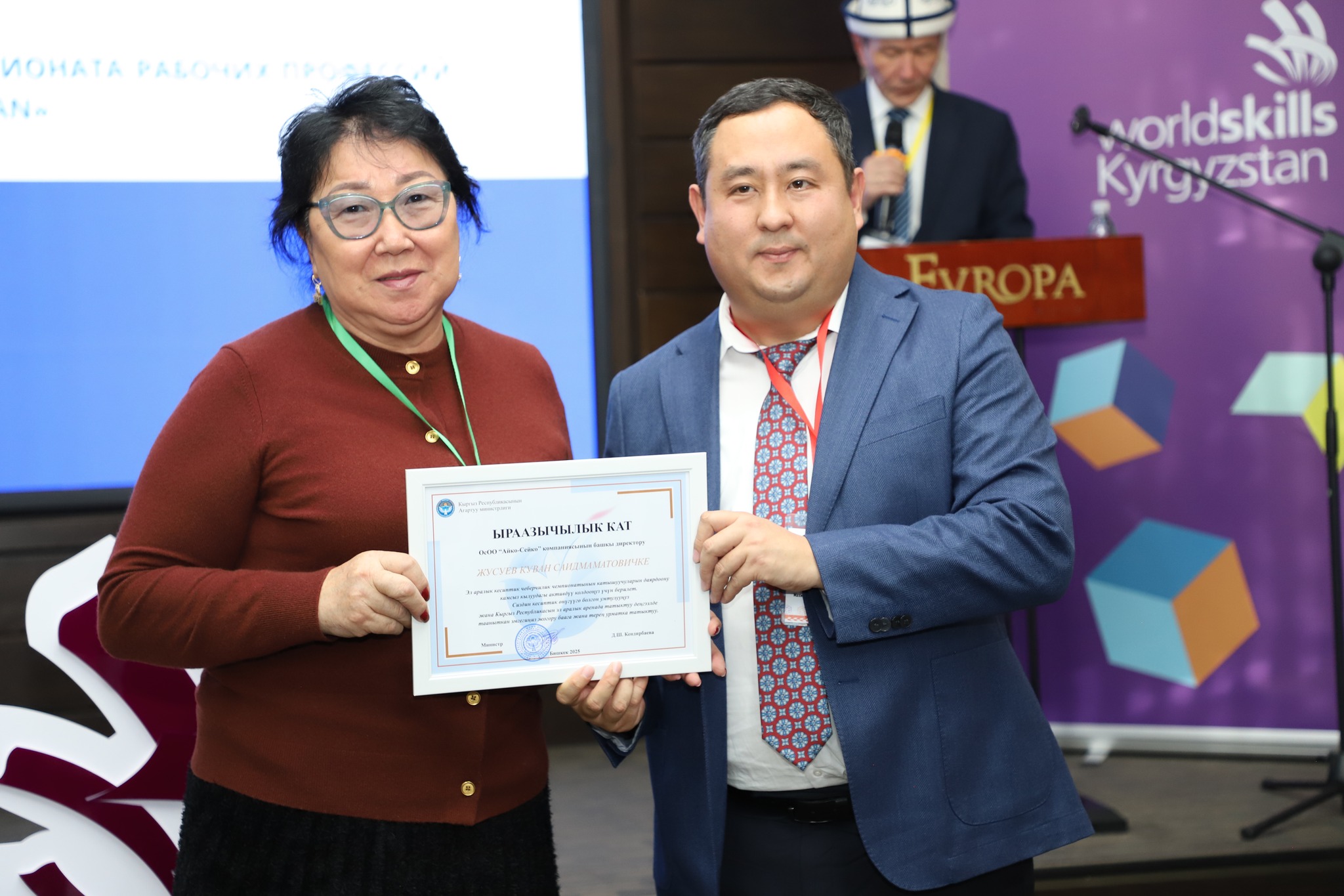 Также заместитель министра выразил благодарность общественному фонду «WorldSkills Кыргызстан», а также всем партнерам, которые поддерживают движение, помогают развивать профессиональные компетенции, организуют соревнования и предоставляют возможность участвовать на международной арене.