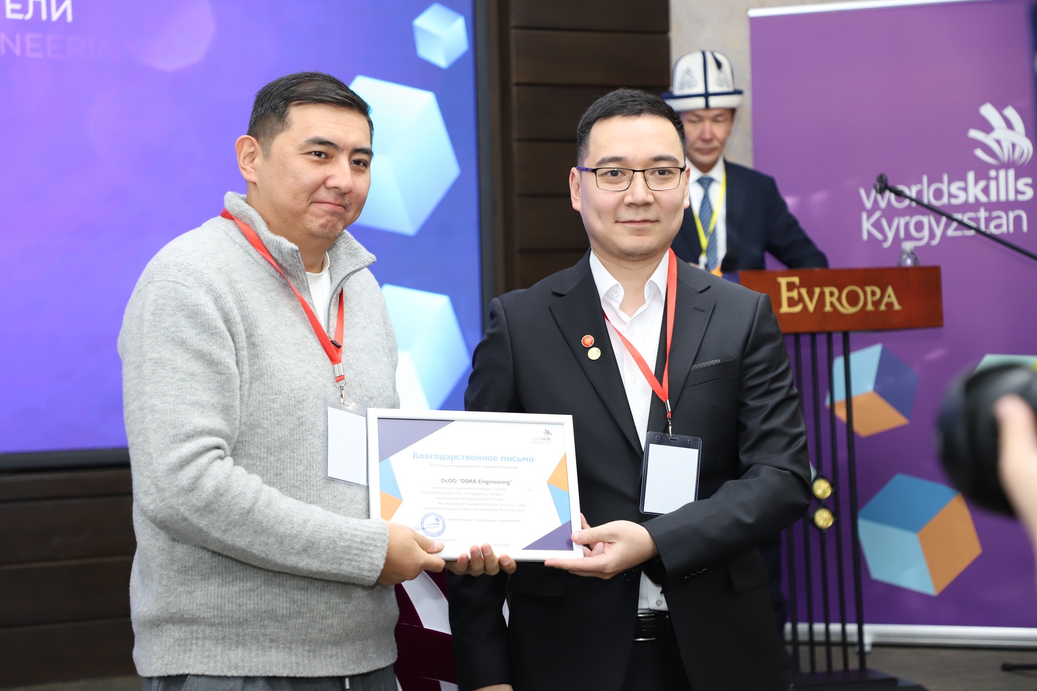 Кроме того, благодарственные письма были вручены участникам, преподавателям и партнерам чемпионатов «WorldSkills Asia 2025» в Тайбэе, «TurkicSkills 2025» в Актау и «EmiratesSkills 2025» в Абу-Даби.