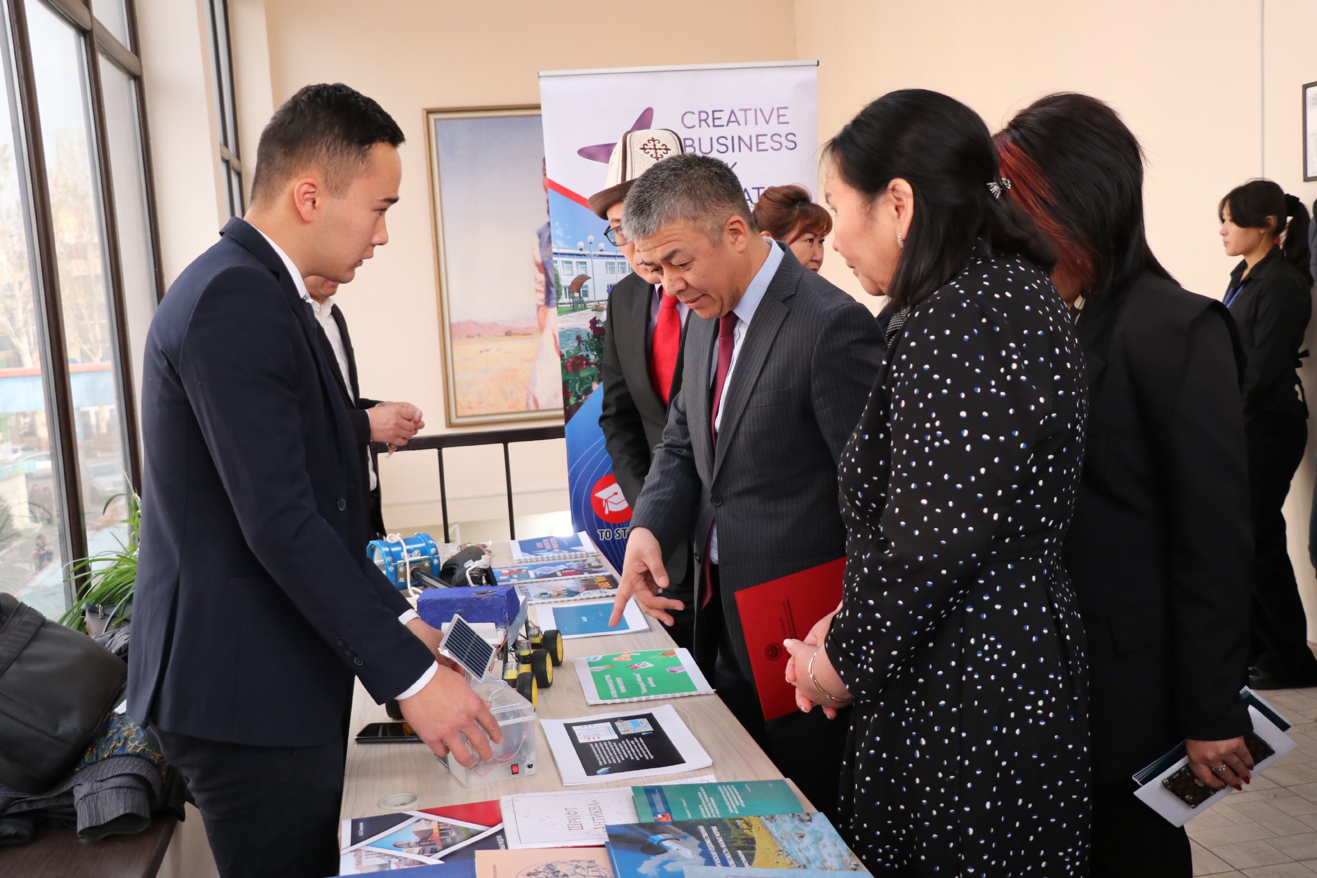 Министрлик тарабынан уюштурулган иш-чарада алгач министрдин орун басары жогорку окуу жайлардын илимий жаңылыктарын чагылдырган көргөзмө менен таанышып, сентябрь айында жогорку окуу жайларында ачылган бизнес-инкубаторлор өз жемишин бере баштаганын белгиледи.