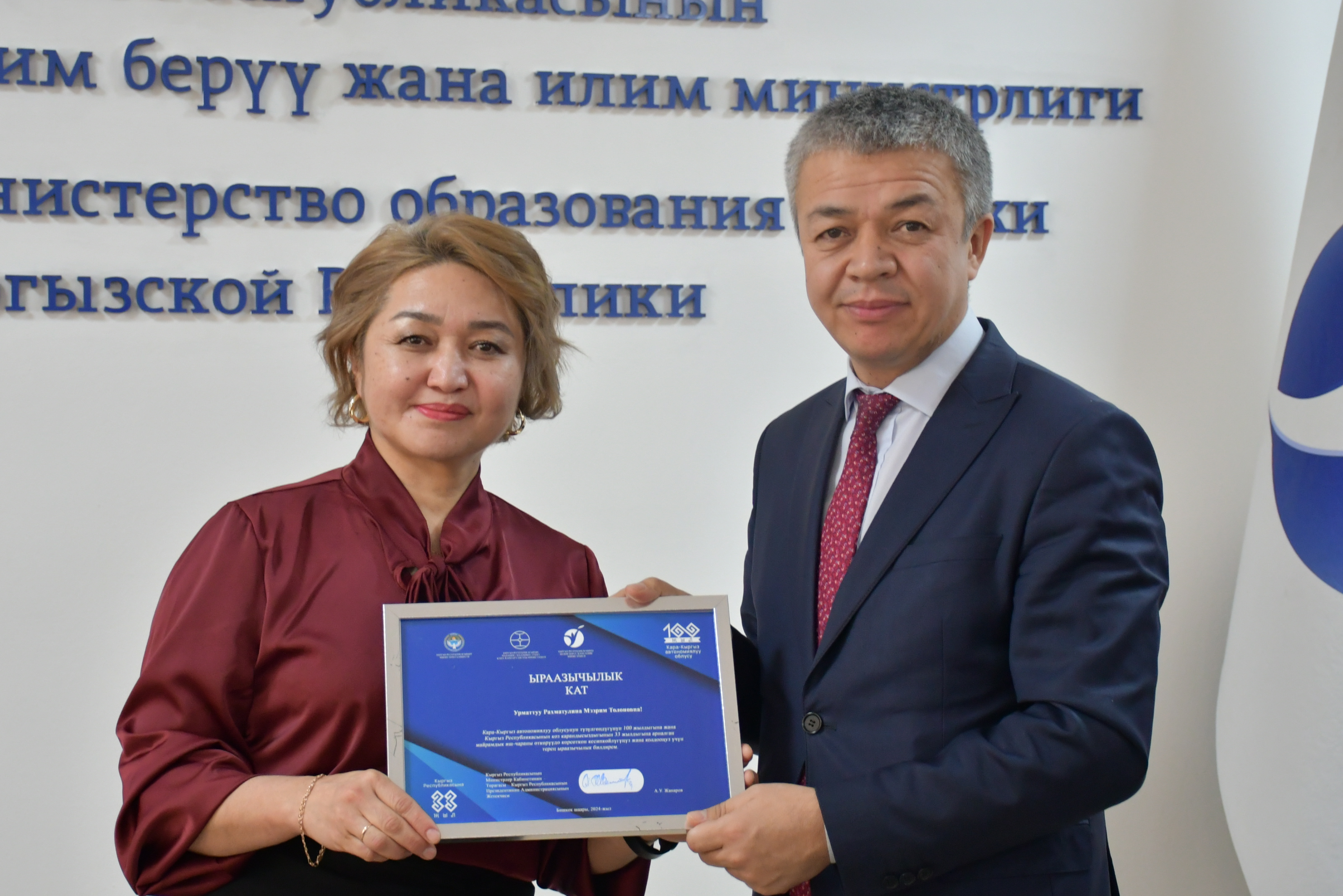 Бишкектеги 13 окуу жайдын кызматкерлерине жана студенттерине Кара-Кыргыз автономиялуу облусунун түзүлгөндүгүнүн 100 жылдыгына жана Кыргыз Республикасынын кɵз карандысыздыгынын 33 жылдыгына арналган ири масштабдагы маданий иш-чараларды уюштурууга көмөк көрсөткөндүгү үчүн Кыргыз Республикасынын Министрлер Кабинетинин Тɵрагасынын атынан ыраазылык билдирилди. Кызматкерлер менен студенттерге Төраганын Ыраазылык каттарын министрдин орун басары Абазбек уулу Расул кечээ, 24-декабрда, Билим берүү жана илим министрлигинде салтанаттуу түрдө тапшырды.
