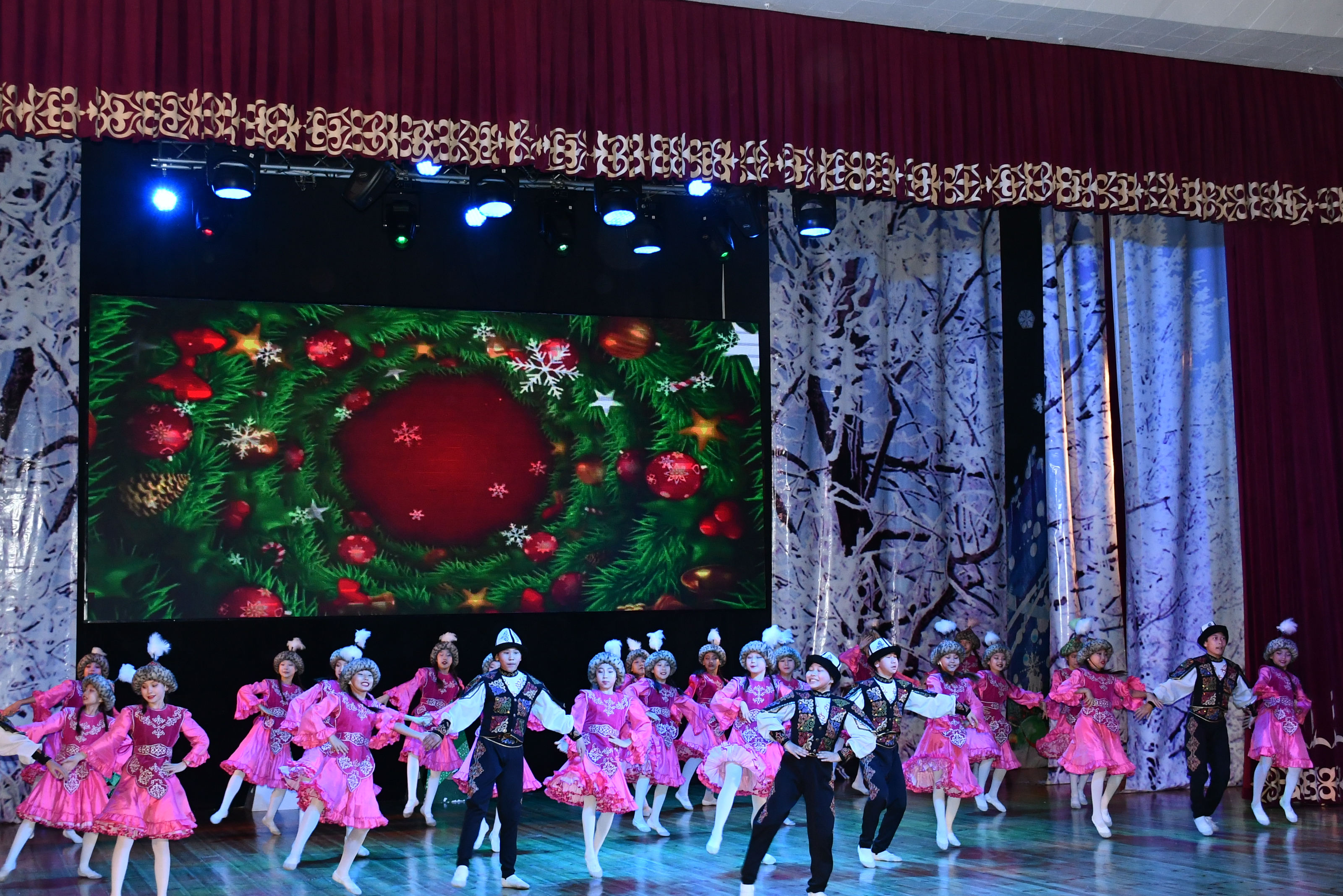 Балдар “Жаңы жылдык жомок” концертин көрүп, белектерди алышты.
