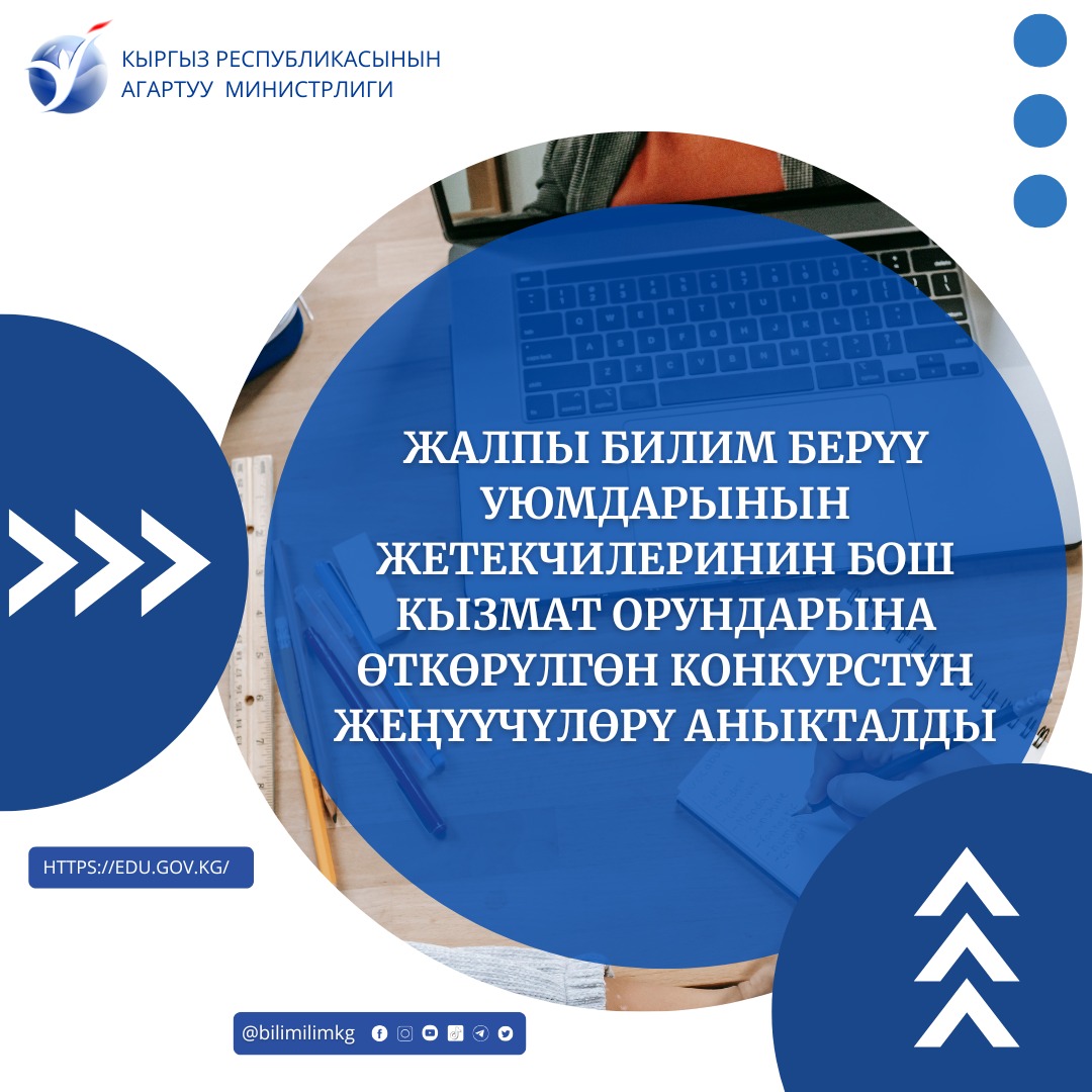 2025-жылдын 15-16-майында Кыргыз Республикасынын жалпы билим берүү уюмдарынын жетекчилеринин бош кызмат орундарына өткөрүлгөн конкурс жыйынтыкталып, жеңүүчүлөрдүн тизмеси бекитилди. Тиешелүү буйрукка кечээ, 19-майда, министрдин орун басары Альберт Махметкулов кол койду.