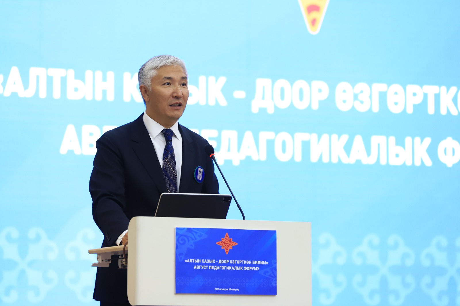 2025-жылдын 18-августу, Ош шаары. Ош шаарында Кыргыз Республикасынын Агартуу министрлиги уюштурган “Алтын Казык – доор өзгөрткөн билим” август педагогикалык форуму өз ишин баштады. Билим берүү тармагындагы жылдын эң башкы окуясы 400дөн ашуун катышуучунун: мугалимдер менен мектеп директорлорунун, бала бакчалар менен кесиптик лицейлердин кызматкерлеринин, жогорку окуу жайлардын, мамлекеттик органдардын жана эл аралык уюмдардын өкүлдөрүнүн башын бириктирди. Коноктордун арасында КР Президентинин Администрациясынын өкүлдөрү, Президенттин облустардагы ыйгарым укуктуу өкүлдөрү жана алардын орун басарлары, ошондой эле Азия өнүктүрүү банкынын, ЮНИСЕФтин, Дүйнөлүк банктын, Европа Биримдигинин, Ага Хан Фондунун жана БУУнун өкүлдөрү бар.
