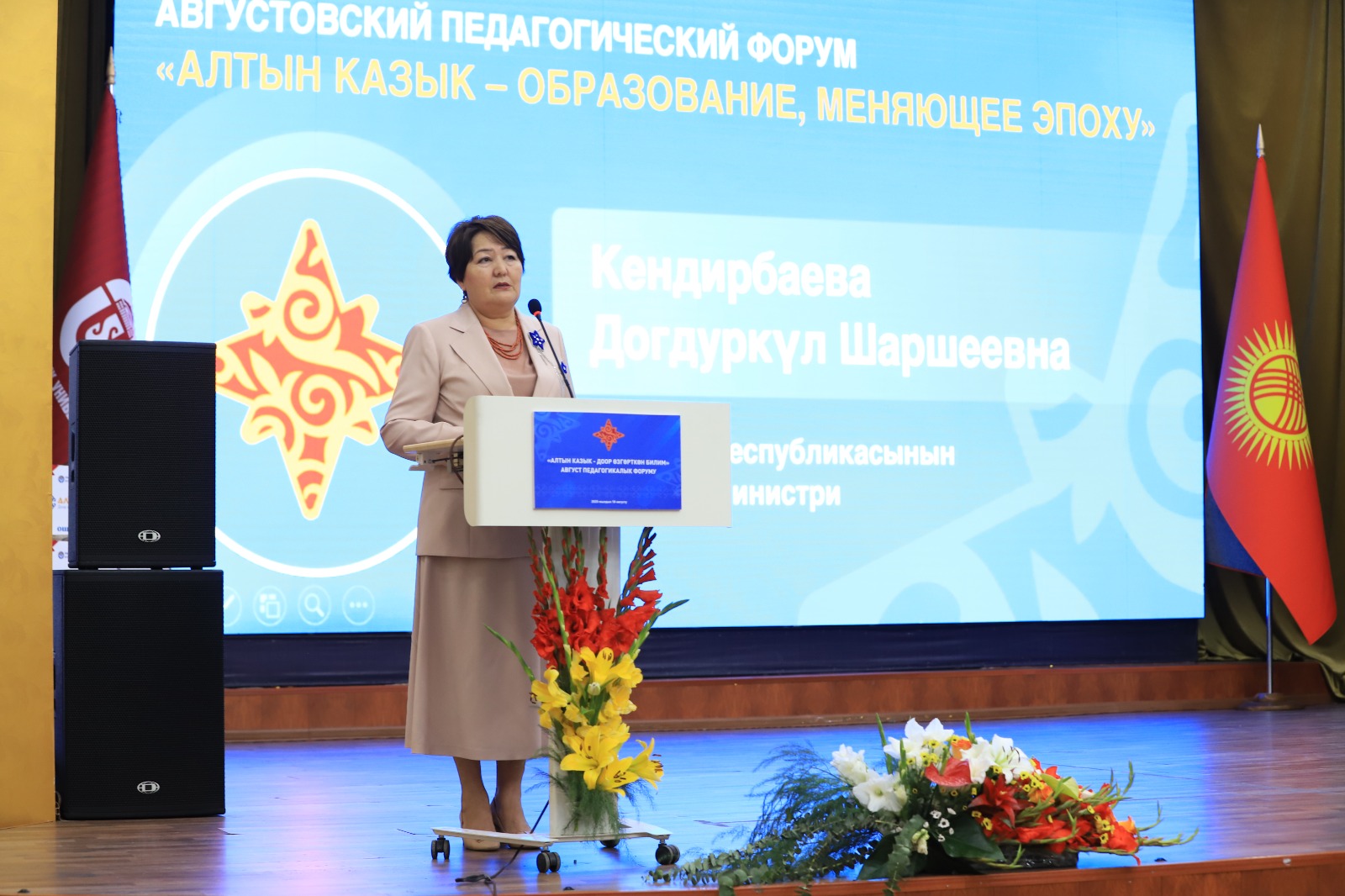 “Алтын Казык – доор өзгөрткөн билим” август педагогикалык форуму – жөн гана кесиптик жолугушуу эмес, ар бир бала заманбап жана сапаттуу билим алууга жетүүсү, ал эми мугалимдерди кесиптик жактан даярдоо жана кайра даярдоо системасы учурдун чакырыктарына жана эмгек рыногунун суроо-талаптарына жооп бериши үчүн мамлекеттин, коомдун жана эл аралык өнөктөштөрдүн күч-аракеттери бириккен мейкиндик.