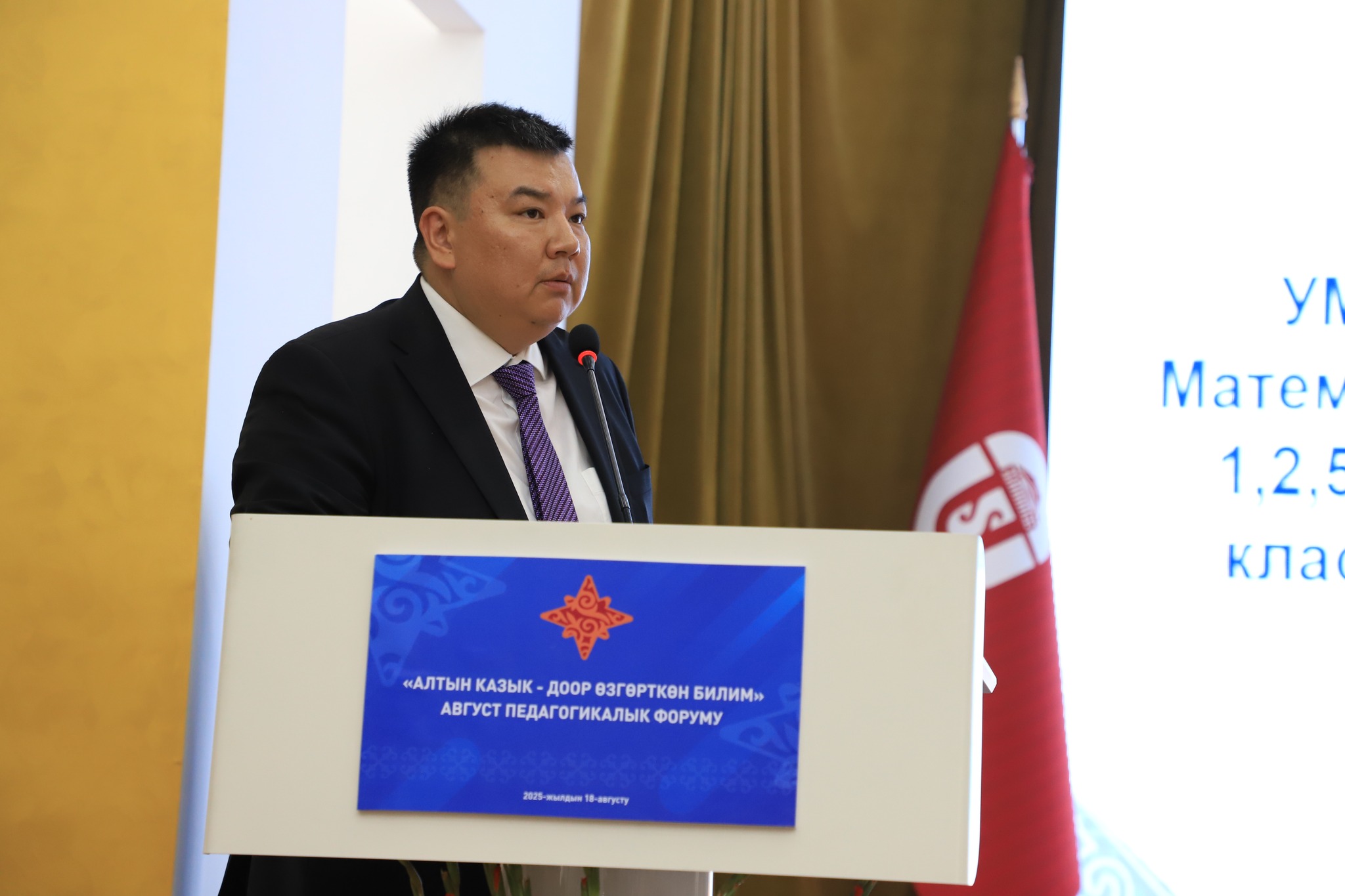 Август педагогикалык форумунун алкагында өткөрүлгөн пленардык жыйында жана мектеп китепканачыларынын секциясында Кыргыз Республикасынын Агартуу министрлигине караштуу «Окуу китеби» басма үйү» мамлекеттик мекемесинин директору Төлөгөн Аматов баяндама жасады.