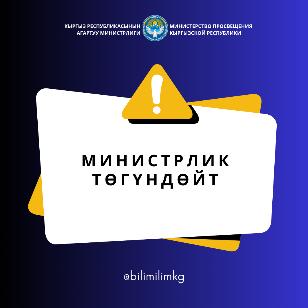 Кыргыз Республикасынын Агартуу министрлиги 2025-жылдын 26-27-ноябрында өтө турган Жамааттык коопсуздук кеңешинин кезектеги сессиясына жана 30-ноябрдагы Кыргыз Республикасынын Жогорку Кеңешинин депутаттарын мөөнөтүнөн мурда шайлоого байланыштуу билим берүү уюмдарындагы (бала-бакча, мектеп, лицейлер) окуу процесси боюнча төмөндөгүлөрдү билдирет.